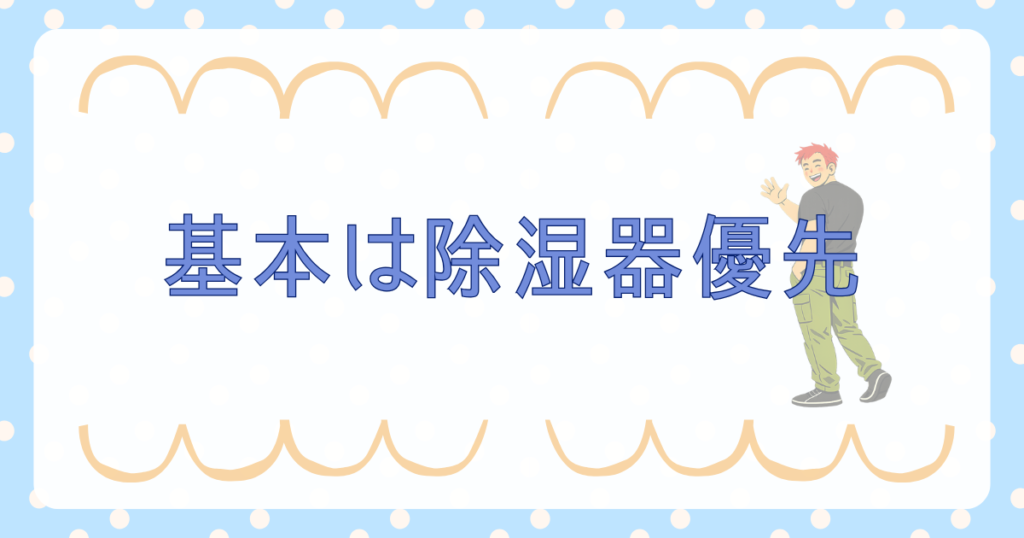 気温が高めだから、コンプレッサー方式が一番効率よく湿気を吸うし、コスパ面も◎。