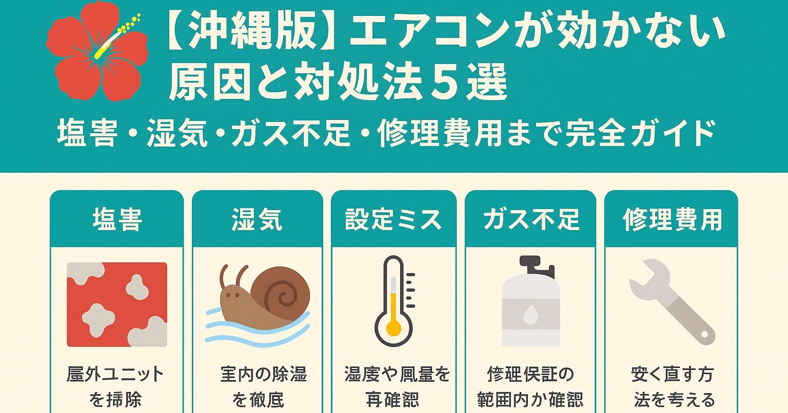 この記事は、沖縄でエアコンの効きが悪い/冷房効率を少しでも上げたい人向けに、今日からできる工夫をまとめたものです。